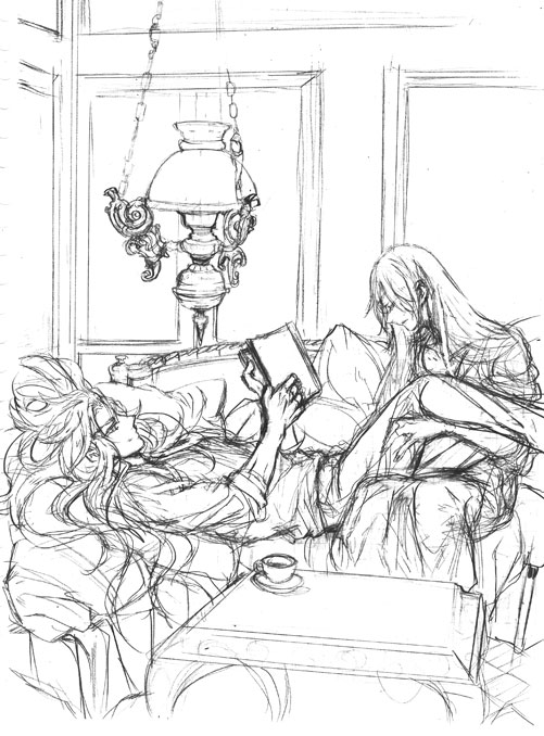 シャカがサガとカノンに挟まれているコマの構図がこれは、普通描けないぞ!!!・・・・・・と感じたので、その絵から色々インスピレーションを得て描かいたモノでした。前も言ったかもだけど。ぱおさんの描く構図は本当に難しいの描いてるな・・・っていうのが多いのね・・・。