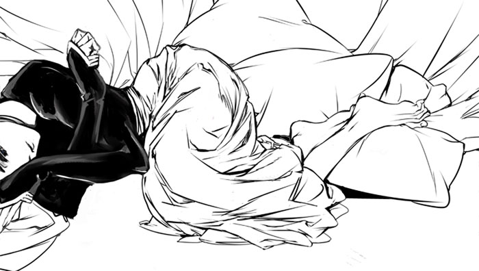 という事で、久しぶりに絡みを描こうとしてコマ割り悩んだ…。