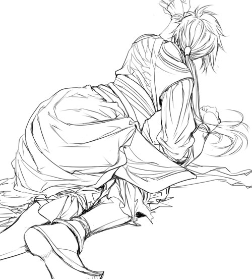 前に描いた落描きのをペン入れ。時間かかってしまう。前より7姜維の衣装は憶えたけど。分からないよー。手甲がこんなに面倒くさいと思ったのは初めてだよ!後で細部を描く…。