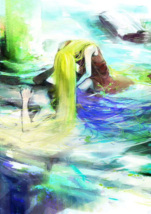 双子乙女は情景の中に居るのが好きなのかな。遠くに居る二人の姿を描くのも楽しい。