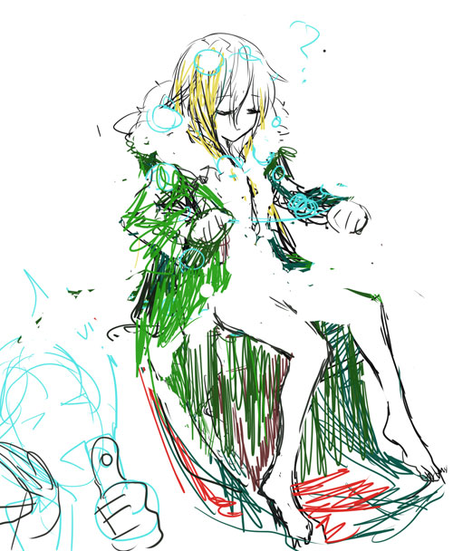 の名残でラフは緑色で塗ってる。まー禅様の衣装も緑色だけども。