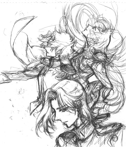 イラスト制作中なり。私的にTVシリーズではこの三人が王子様だったなぁ…と思う三人を並べてみた的な。
