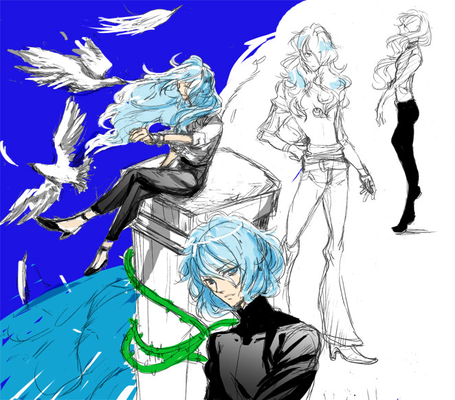 服装どうしようかな~。って考えてた落描きでした。やー…毎回服装に悩むよね…。