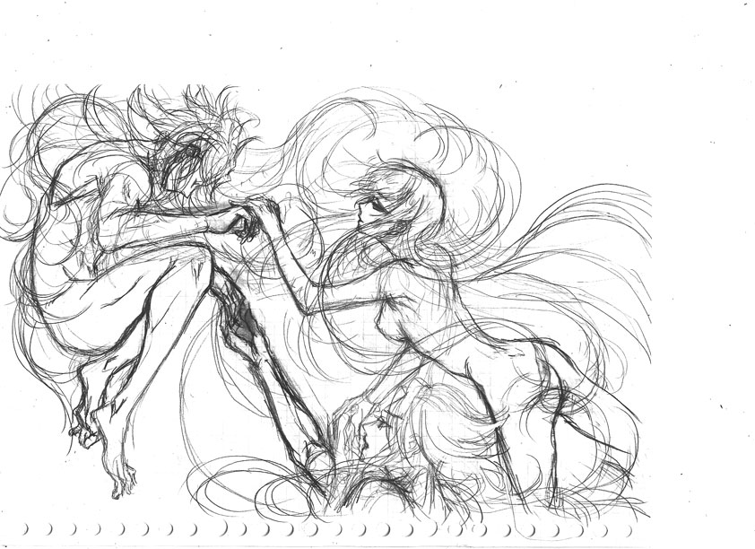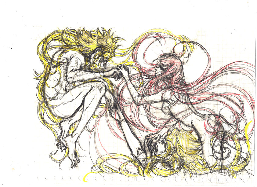 髪の毛で隠す所は隠さなければとか思って描いてるあたり・・・。