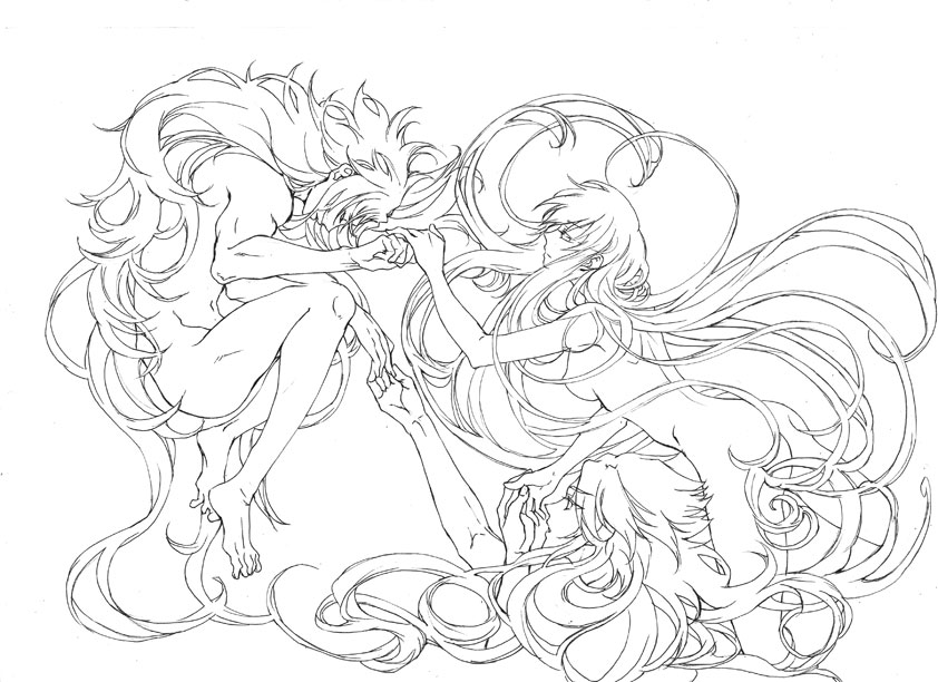 女の子の長髪でカラー用の線画はキサラ以来に描いたかもしれない。わ~。色はその内・・・。