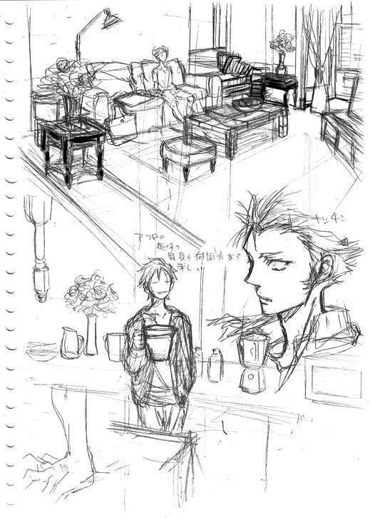部屋とか描いてて悩むのが小物とか。何を置くのかな?小物がどう、描いて良いか分からないぜ。