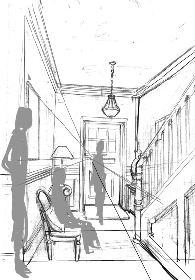 外国の玄関って、映画とかでよく見るけど。描いてみて何か実感…。靴箱とか玄関に有るわけでは無い…のかな?