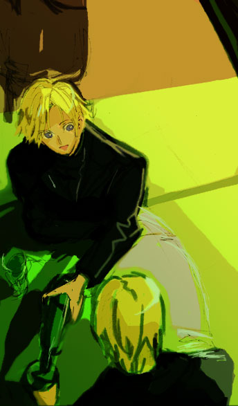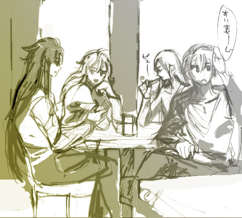 他の原稿で4人飲食してるのを描いてる流れでの…黄金キャラに変えての練習絵です。