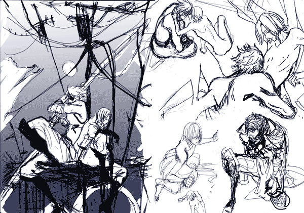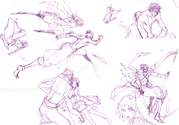 こういう顔とか気にしないロングで動きだけ集中する方が、気が楽というか、楽しいかも。表情はまた別思考です…。描いてて。こういう表情じゃねぇんだ…。違うんだ…。というのが多すぎて、顔描く方が疲れる事が多い(笑)