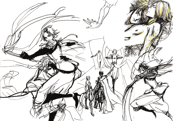 ひたすらモシャったです。こういうのを落描きするのが好きだったりします。ハンパに塗ってるのはワザと。でもあまり漫画にもイラストにも使えない…よね…。