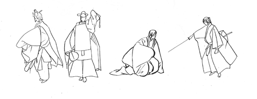 ↓の…(これもモシャです。髪型はついナリ様で描いちゃった!わははー)絵が載ってたから。凄いシンプルに美しく無駄なく着物を描かれてるなーーー!と!大きさ3cm位で小さい絵なんですけど、着物のラインが本当に美しくて。キュンvとします!